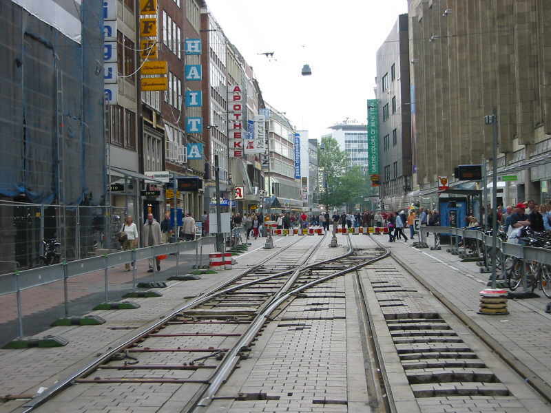 Kletterweichenbetrieb bei der Bremer Straßenbahn AG (BSAG) in der Obernstraße, Bremen. Die Fotos entstanden am 22.6.2002.