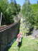 Die Schmalspurbahn fährt vom oberen Endpunkt der Standseilbahn zum Fuß der neuen Staumauer. Sie benutzt die Trasse der