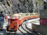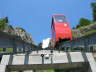 Verbindung durch eine Kombination von Standseilbahn, Schmalspurbahn und gummibereifter Standseilbahn.