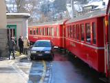 Mit je einem ABe4/4 II und ABe 4/4 III gehts hinunter nach Pontresina. Weil es sich so schlecht rodelt mit großen