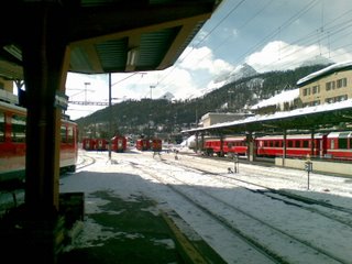Heute finden verschiedene Programme statt. Nach einem gemeinsamen Ausflug nach Poschiavo geht es ans andere Ende der Berninabahn nach St. Moritz. Von hier fährt ein Teil weiter ins Engadin, andere bleiben etwas länger hier und alle treffen sich abends auf Alp Grüm wieder.